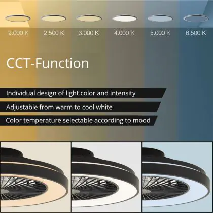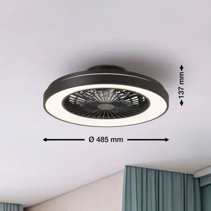 Der Brilliant Mazzaro Ventilator Plastik Schwarz 36W 4700lm - 830-865 CCT+RGB | 485mm - Fernsteuerung Dimmbar integriert sich unauffällig in verschiedene Einrichtungsstile – von urbanem Minimalismus bis zu klassischen Wohnwelten. Die sauberen Linien und die zurückhaltende Farbgestaltung machen ihn zu einer langlebigen Designlösung.