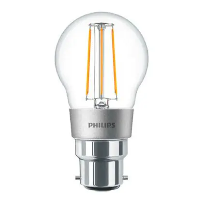 Die Philips Classic LED Glühbirne B22 Birne Fadenlampe Klar 4.5W 470lm - 827 Extra Warmweiß | Dimmbar - Ersatz für 40W ist eine effiziente B22 (Bajonettsockel) LED-Lampe mit Retrodesign und der perfekte Ersatz für Ihre konventionellen 40W Lampen mit B22 (Bajonettsockel). Zudem strahlt sie Licht in der Farbtemperatur 2700K - Extra Warmweiß aus und punktet durch eine lange Lebensdauer.