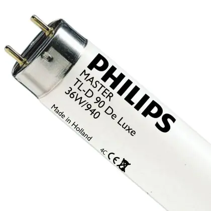 Die Philips TL-D 90 De Luxe 36W 940 (MASTER) überzeugt mit einem geringen Energieverbrauch von nur 36 Watt und mit einer neutralen kaltweißen Farbtemperatur.