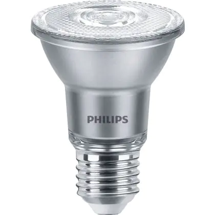 Der Philips Master Value LED Glühbirne Reflektor E27 PAR20 6W 500lm 40D - 927 Extra Warmweiß | Höchste Farbwiedergabe - Dimmbar - Ersatz für 50W ist ein leistungsstarker LED-Strahler mit E27-Sockel. Er kommt mit einer hohen Lebensdauer von 25000 Stunden daher und spart Ihnen somit nicht nur Energie-, sondern auch Austausch- und Wartungskosten. Im Preis ist zudem eine All-In-Garantie von 5 Jahre enthalten.